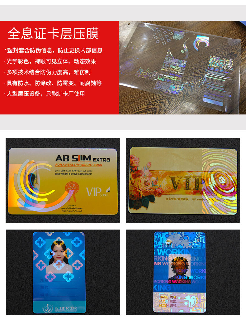 激光镭射防伪证卡层压膜护卡膜透明烫印保护膜